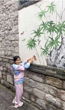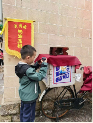 走进一片清代风格的老商铺中,孩子们发现屋顶的边边像波浪一样。