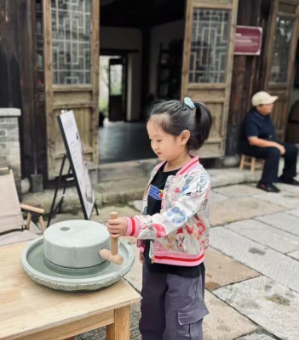 精巧的石头上打磨出一个小石磨,“比我们的小书包还重呢!”孩子们伸出小手比划着,感受着古代工匠的巧思。