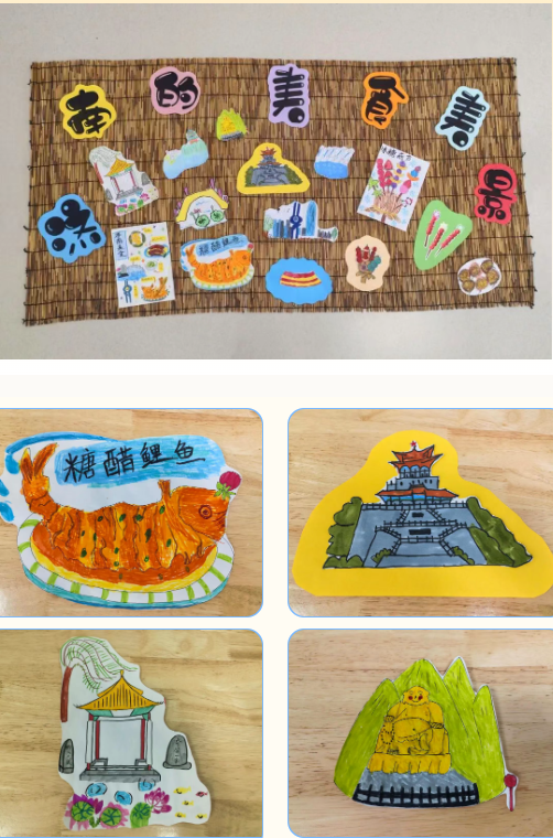 在美工区和建构区,孩子们用小手记录下了济南古城的美食美景。