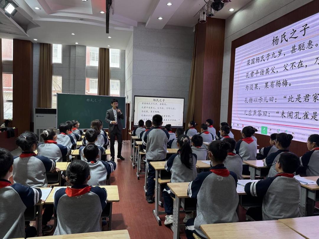 几节示范课的展示,堪称楹联与学科教学融合的生动范本。授课教师们巧思设计,将楹联元素与语文、数学等学科内容深度绑定,或是以楹联赏析解读经典文本,或是用楹联创作串联数学知识。这样的课堂打破了学科壁垒,让原本枯燥的知识点变得鲜活有趣,既锻炼了学生的逻辑思维与文字功底,又让传统文化的种子在课堂里悄然发芽。