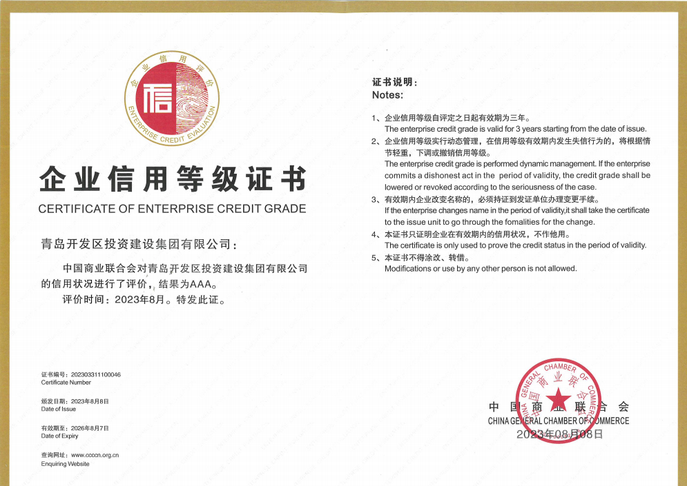 百事信为本,企业在发展中唯有坚持诚信经营,不断树立和强化守法守信的观念,才能行稳致远。开投集团自成立以来始终坚持诚信经营,以诚信立身兴业,时时处处践行诚信文化,在诚信理念引领下,集团近几年斩获百余项荣誉,包括全国AAA级信用企业、中国服务业企业500强、青岛市经济卓越成就单位等。旗下3家子公司获评“全国AAA级信用企业”。党建品牌“阳光开投,奉献有我”深入人心,成为青岛西海岸新区“诚信建设示范单位”,集团诚信实践案例入选2025年全国企业诚信建设优质案例,为区域发展注入诚信正能量。
