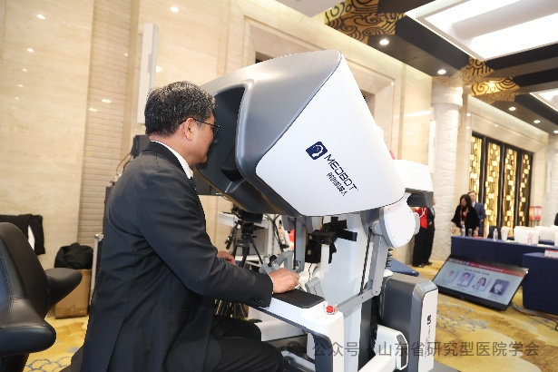 手术当日,胡三元教授坐在远程中心控制台前,他的面前是高清三维手术视野屏幕,双手操控着精密的主手控制器。而他所指挥的“化身”——一台搭载着多自由度假手腕器械的国产手术机器人,则位于树兰(济南)医院手术室内。