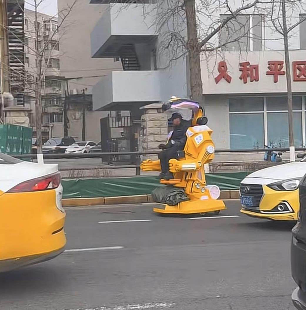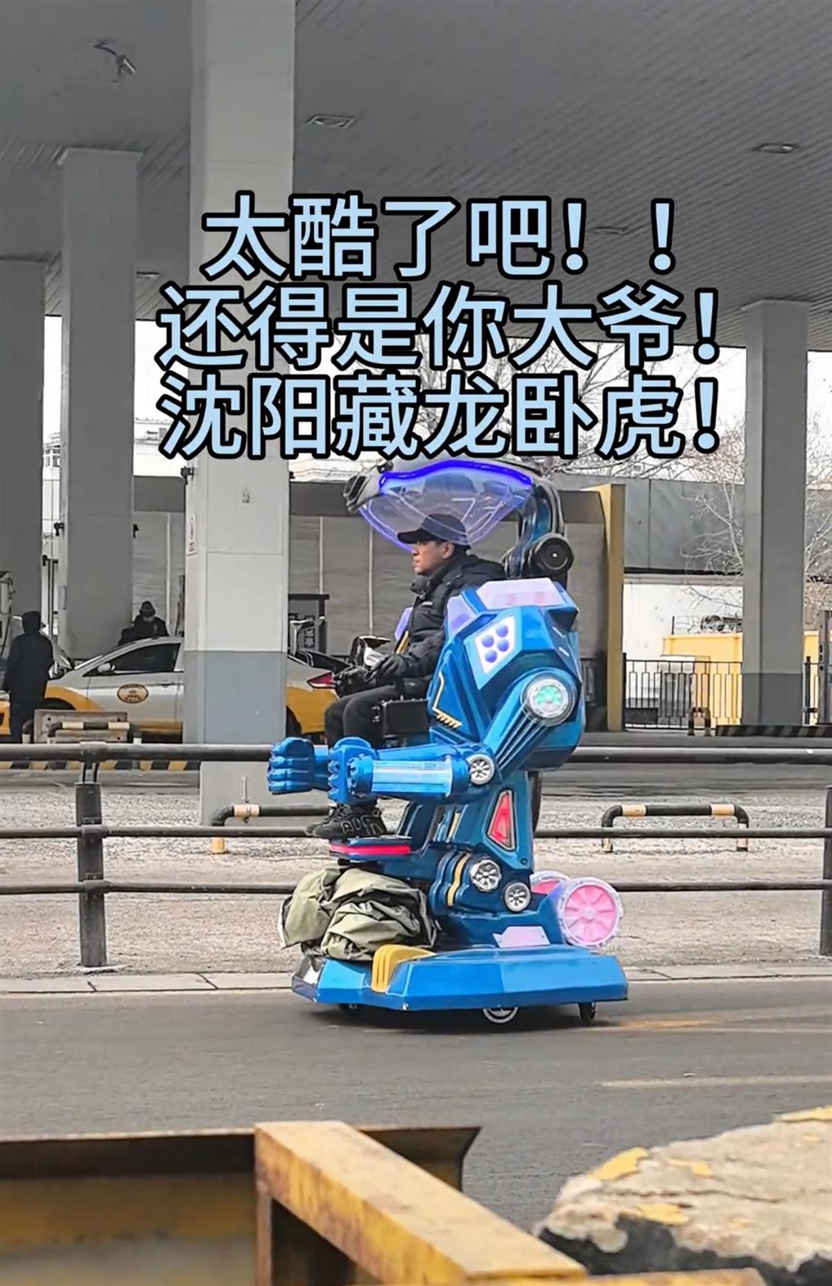 沈阳一大爷开机甲玩具车上路,交警:已依法处罚