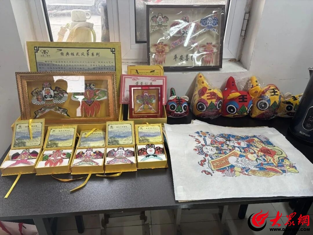随着经济社会发展,村民们对精神文化生活的需求日益增长。作为潍坊市基层文化建设指导员的刘西海敏锐捕捉到村民对非遗传承的浓厚兴趣。他主动牵线搭桥,对接潍坊市金阳公益服务中心等多方资源,反复沟通协调,全力推动落地。这里整齐陈列着风筝、布老虎、木版年画等极具本土特色的非遗物资,每一件作品都承载着潍坊悠久的历史记忆和独特的民俗风情。此次成功落地,正是潍城区用心用情用力、回应村民期盼的生动实践,更是多方力量凝心聚力的丰硕成果。