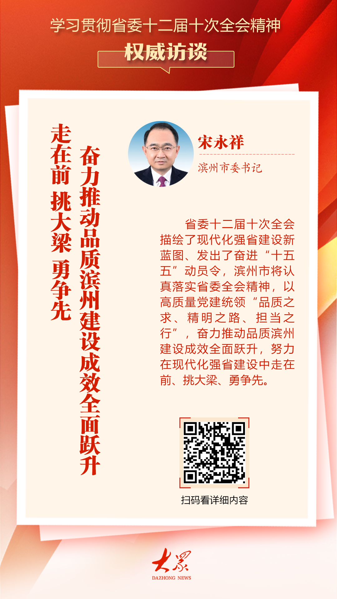 权威访谈丨宋永祥:走在前、挑大梁、勇争先,奋力推动品质滨州建设成效全面跃升