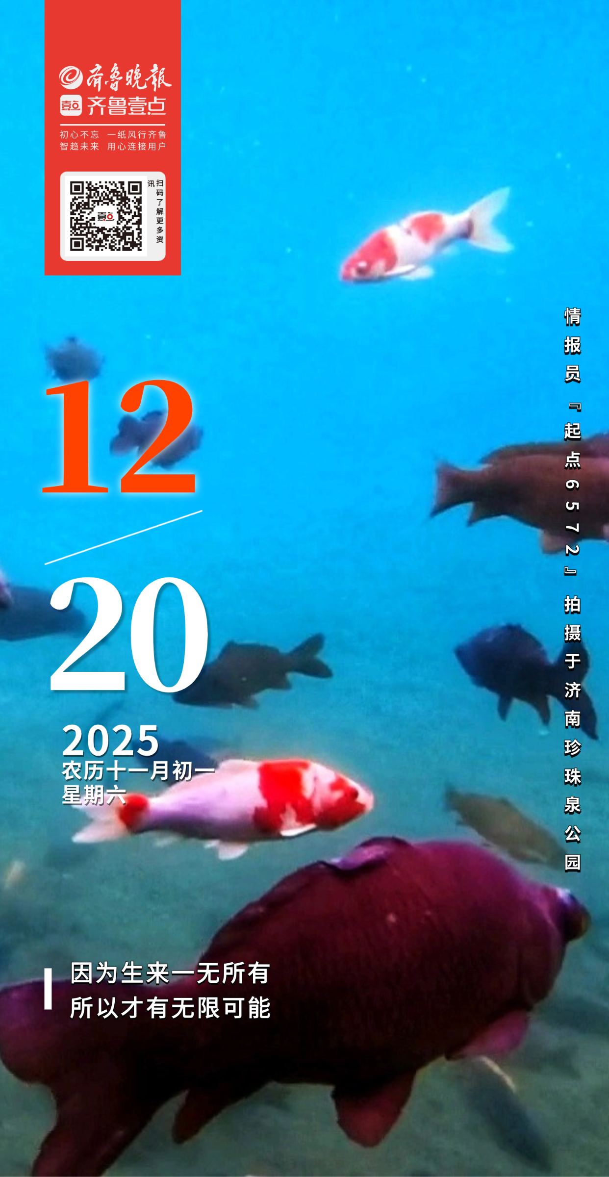 冬日时节,济南珍珠泉别具一番韵味。岸边柳丝挂满霜花,似银枝玉缕。水下却宛如春日,澄澈蓝波中,红鲤摆尾、青鱼穿梭,自在游动。暖融融的泉流轻抚鱼儿,这鲜活温柔的水下世界,成了寒冬里最灵动的生机。