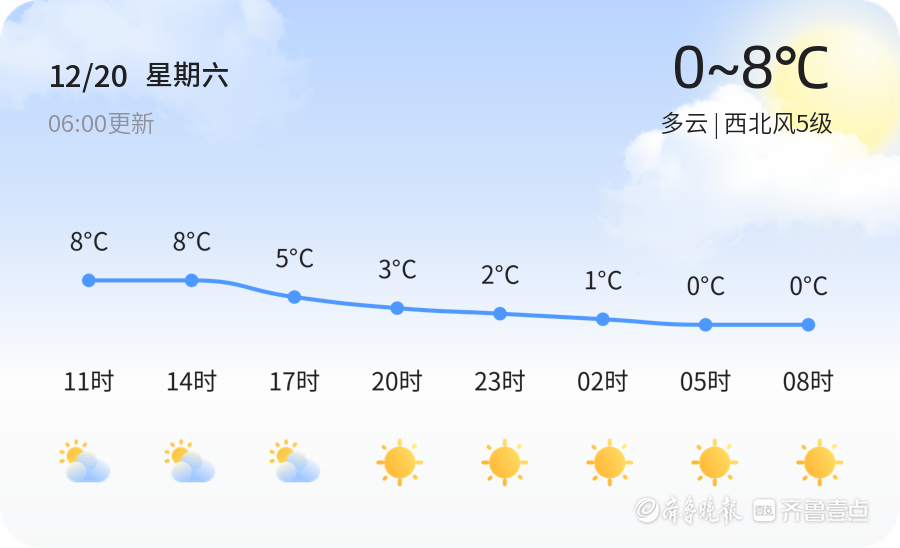 今天是12月20日,星期六,农历十一月初一。青岛市今日天气以多云为主,气温范围在0℃至8℃之间,北风4-5级。各区天气状况基本一致,均为多云,风力较大,市民出行需注意防风保暖。当前温度为4.7℃,湿度较高,PM2.5指数为219,空气质量需关注。