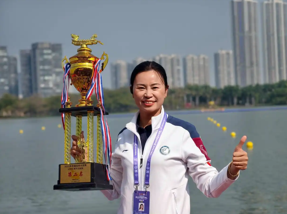 她曾带领队伍在挂满冰凌的铁索旁“砸冰开船”启动冬训,被誉为“北方龙舟精神的集中体现”。训练时,队员们水上挥桨,她在岸上调度,“扩音器”“秒表”“无线通信器”挂满全身。夏秋一身水,冬春一身冰,她与队员们一同奋斗。