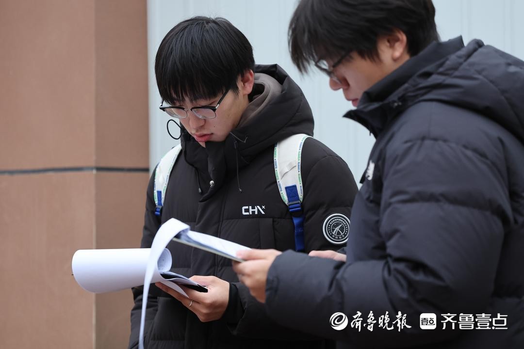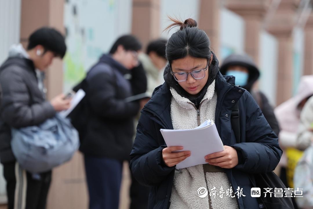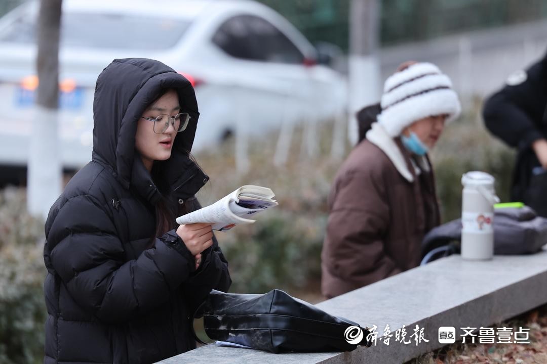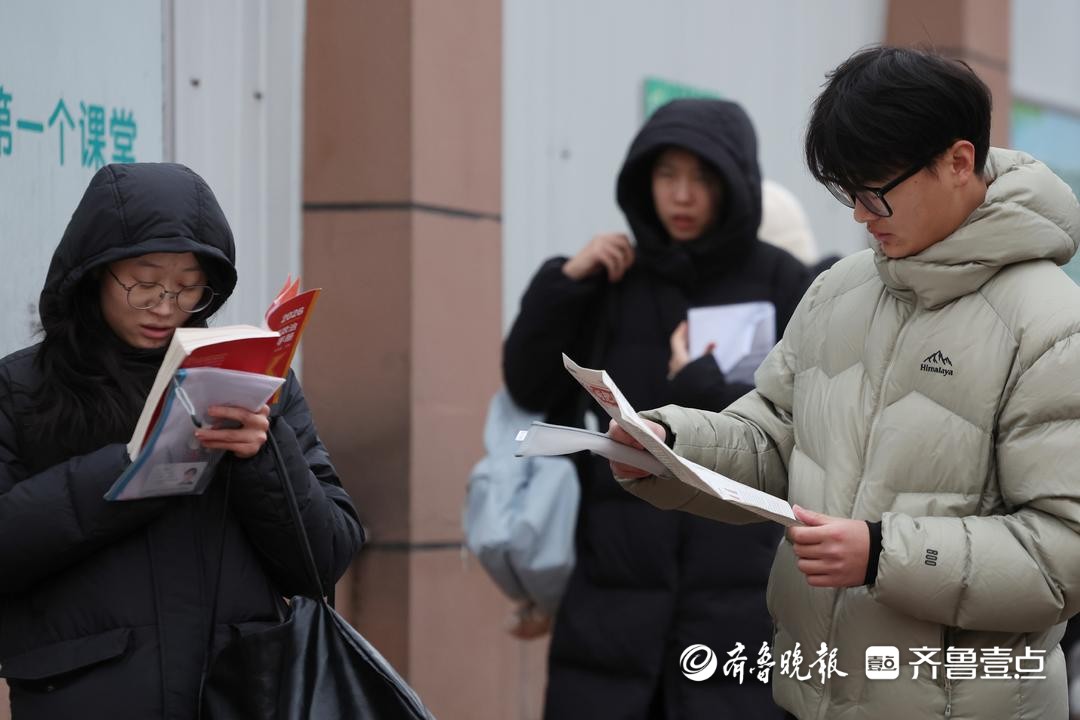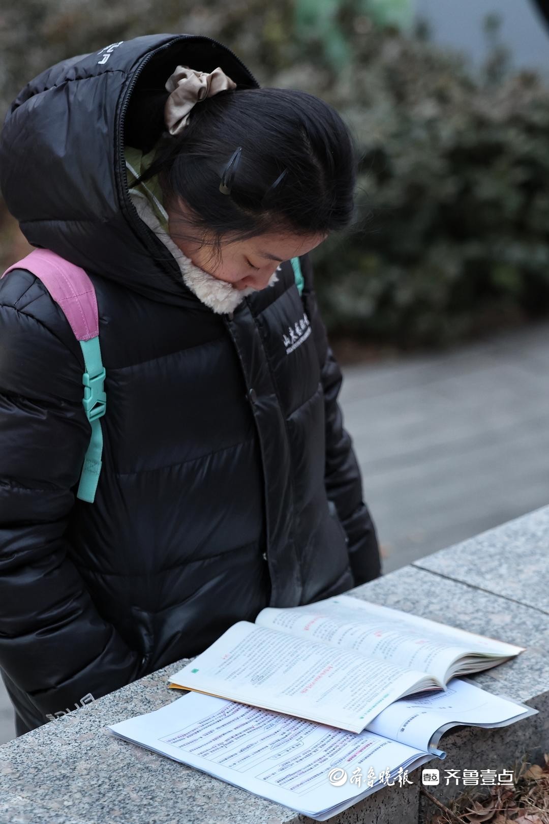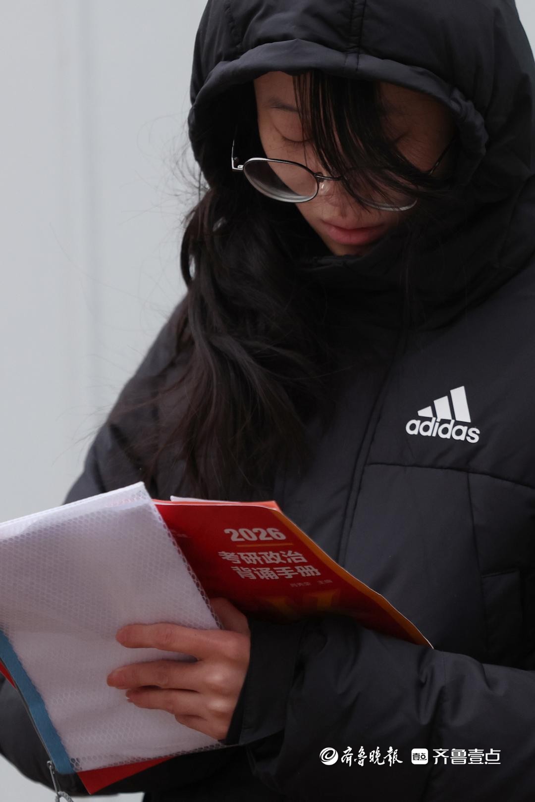 12月20日上午2026年全国硕士研究生招生考试即将开考全国各地343万考生赴考早上7点15分济南三中领秀校区考点考生们早早到来他们裹紧外套有的低头复习有的小声背诵查看资料抓紧最后时间备考为上午的第一场考试做好准备大众新闻齐鲁壹点王鑫