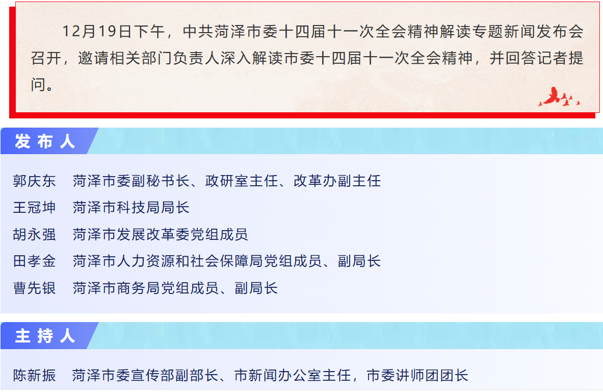 据介绍,中共菏泽市委十四届十一次全会于2025年12月18日举行,听取和讨论了市委常委会工作报告,审议通过了《中共菏泽市委关于制定菏泽市国民经济和社会发展第十五个五年规划的建议》(以下简称《建议》)。