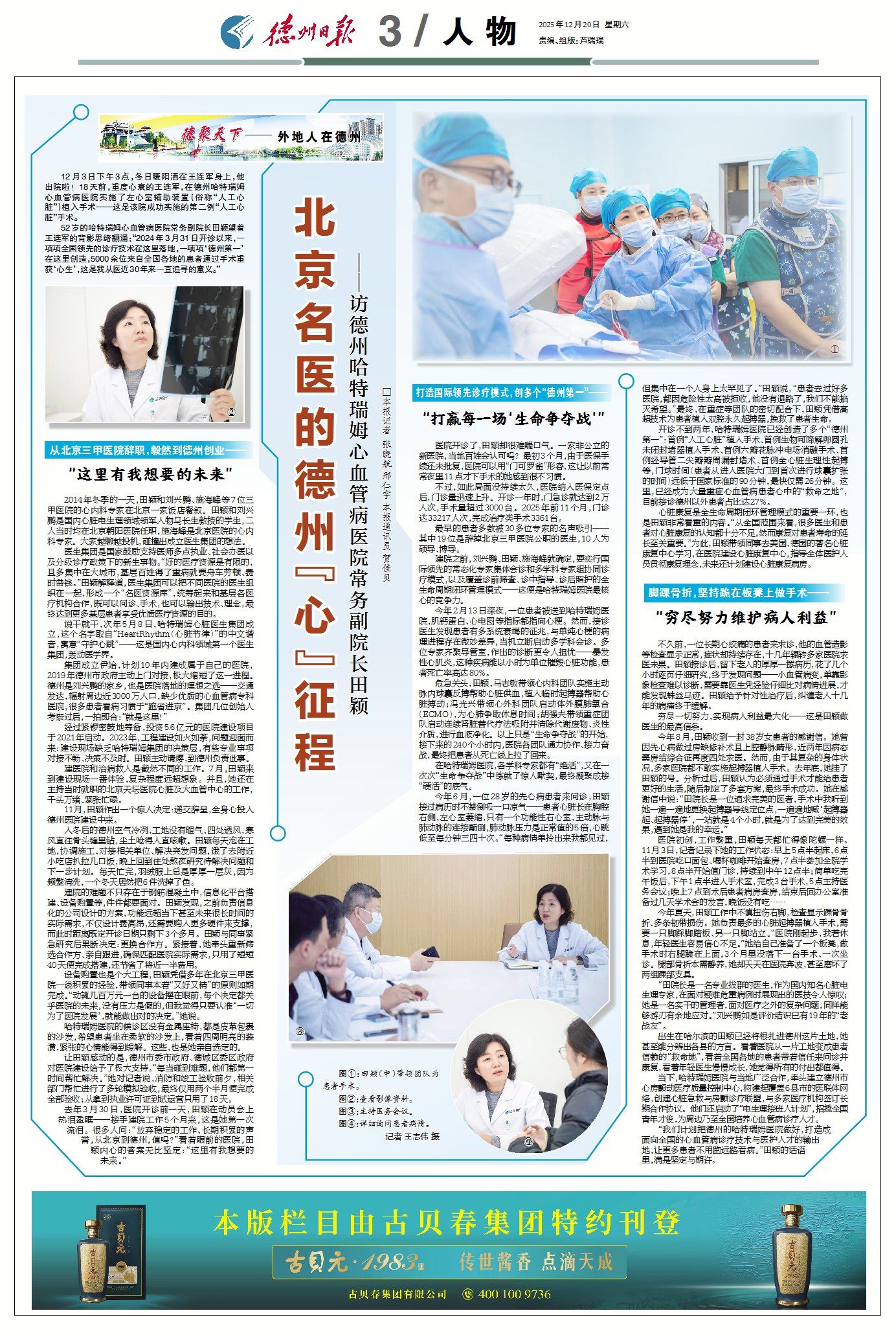 德聚天下·外地人在德州 | 德州哈特瑞姆心血管病医院常务副院长田颖:北京名医的德州"心"征程