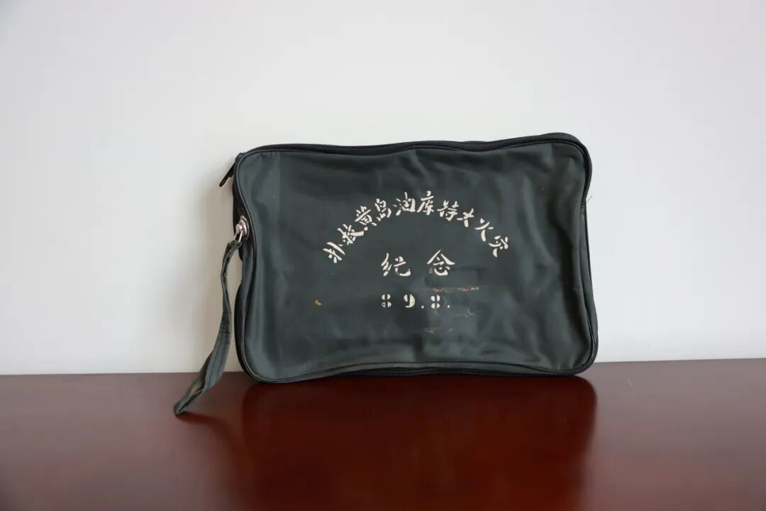 这两件物品均与1989年8月黄岛油库灭火抢险工作相关。印有“扑救黄岛油库特大火灾纪念”公文包,系火灾扑救表彰大会颁发的纪念物。“火场指挥部”旗帜,见证了油田公安消防支队等力量四昼夜鏖战灭火的过程。二者共同印证了油田公安消防指战员逆行出征的英雄精神,也是油田公安消防救援工作的重要见证。