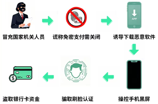“关闭免密支付”类骗局流程如下: