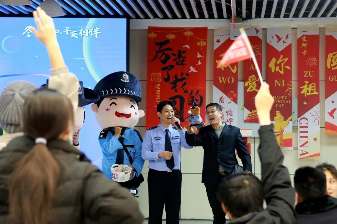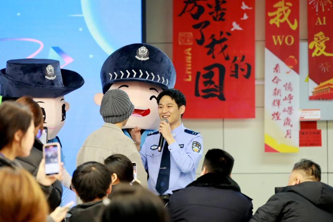一曲结束,李佳璇迅速切换身份,从歌手变身为宣讲员。他聚焦校园常见诈骗类型,详细讲述了兼职刷单、冒充好友、校园贷等诈骗手段和防范技巧,让反诈知识听得懂、记得住、用得上,并以互动问答的方式,引导同学牢记反诈要点。同时,来自分局政工室的民警费聿凡还向在场师生讲解了交通安全、防盗等实用知识,多维度筑牢同学们的安全防线。