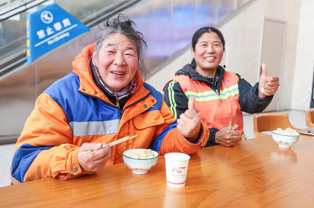 这份温暖,专属于荣成最可爱的人——顶风冒寒的环卫工人,默默耕耘的园林工人。他们守护城市颜值,荣成便以热饺暖其身心。