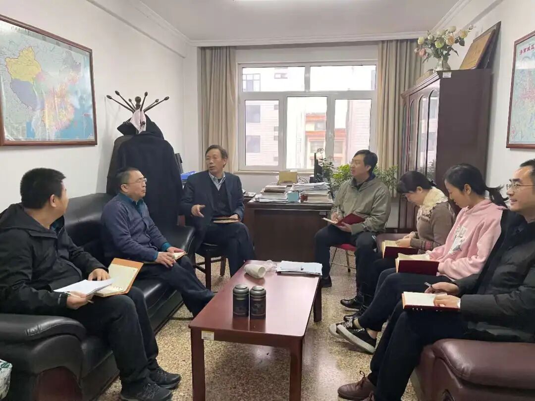 刘德军(左三)和有关专家就“培育发展新质生产力”进行研讨交流。