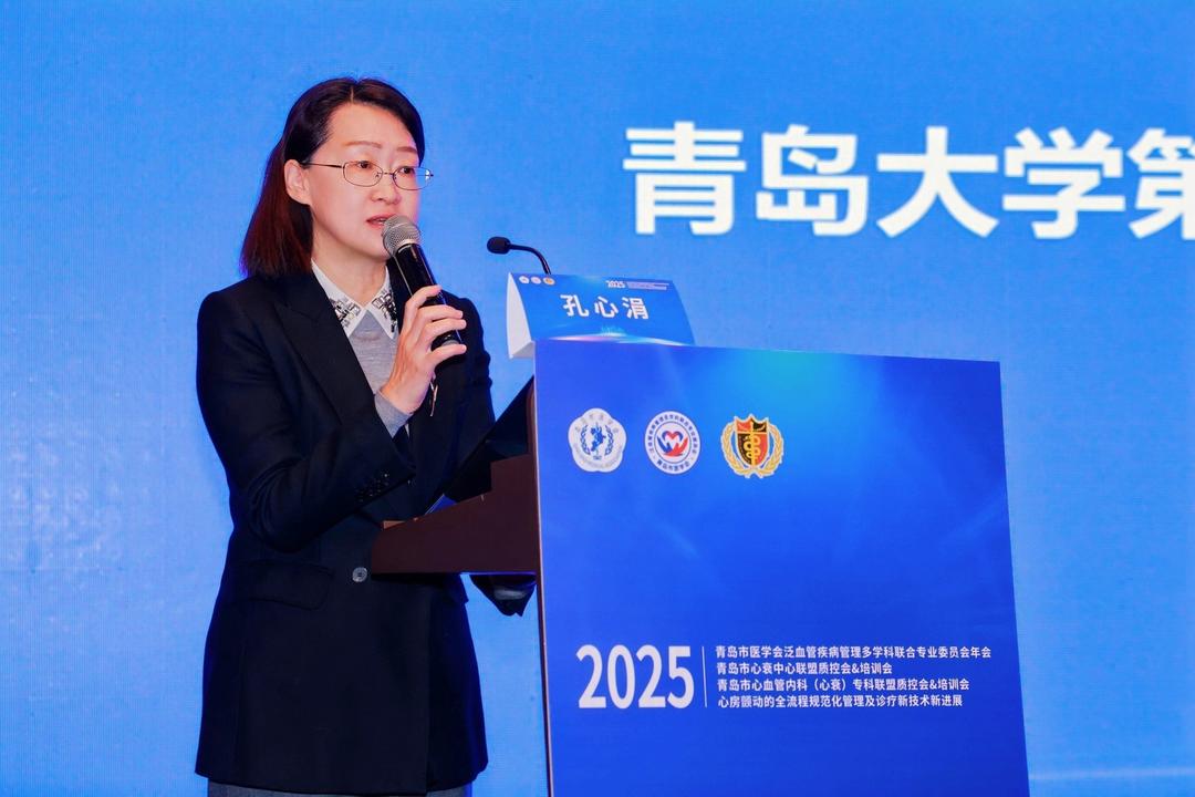 青岛大学第一临床医学院副院长孔心涓教授在欢迎辞中,首先对远道而来的各位专家同道表示热烈欢迎。她指出,青岛大学附属医院作为区域医疗中心,始终致力于心血管疾病的临床研究与防治体系建设。本次多学科、多主题的联合会议,高度契合“以人民健康为中心”的现代医学发展理念,是推动学科交叉融合、提升区域整体医疗服务质量的重要实践。她期待与会专家能充分交流,碰撞思想火花,共同将泛血管疾病的防治与研究推向新的高度。