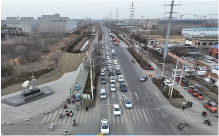 整治前,周边物流园区较多,流量不对称,东西方向车道较少。对路口进行全方位、系统化的调查研究,积极走访沿线企业、村庄,倾听人民群众建议,力求将问题切实解决到位。积极联合相关单位,对该路口东西方向进行渠化设计,加快推进改造工程的具体实施。新建、迁移沿线多出设施标志标牌、电警杆、信号灯,同步开展路基及路面工程、标线铣刨、施划等施工任务。