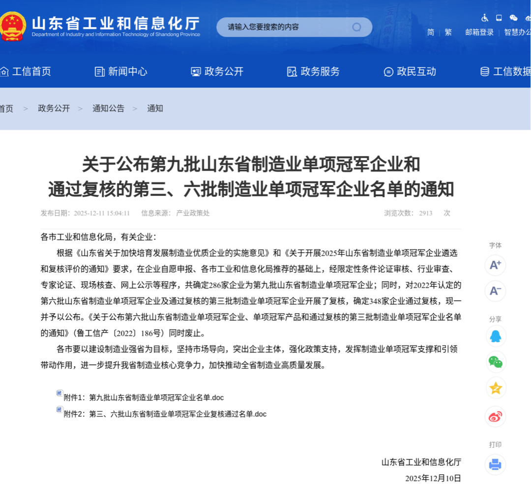 临沂市罗庄区新增2家省级制造业单项冠军企业