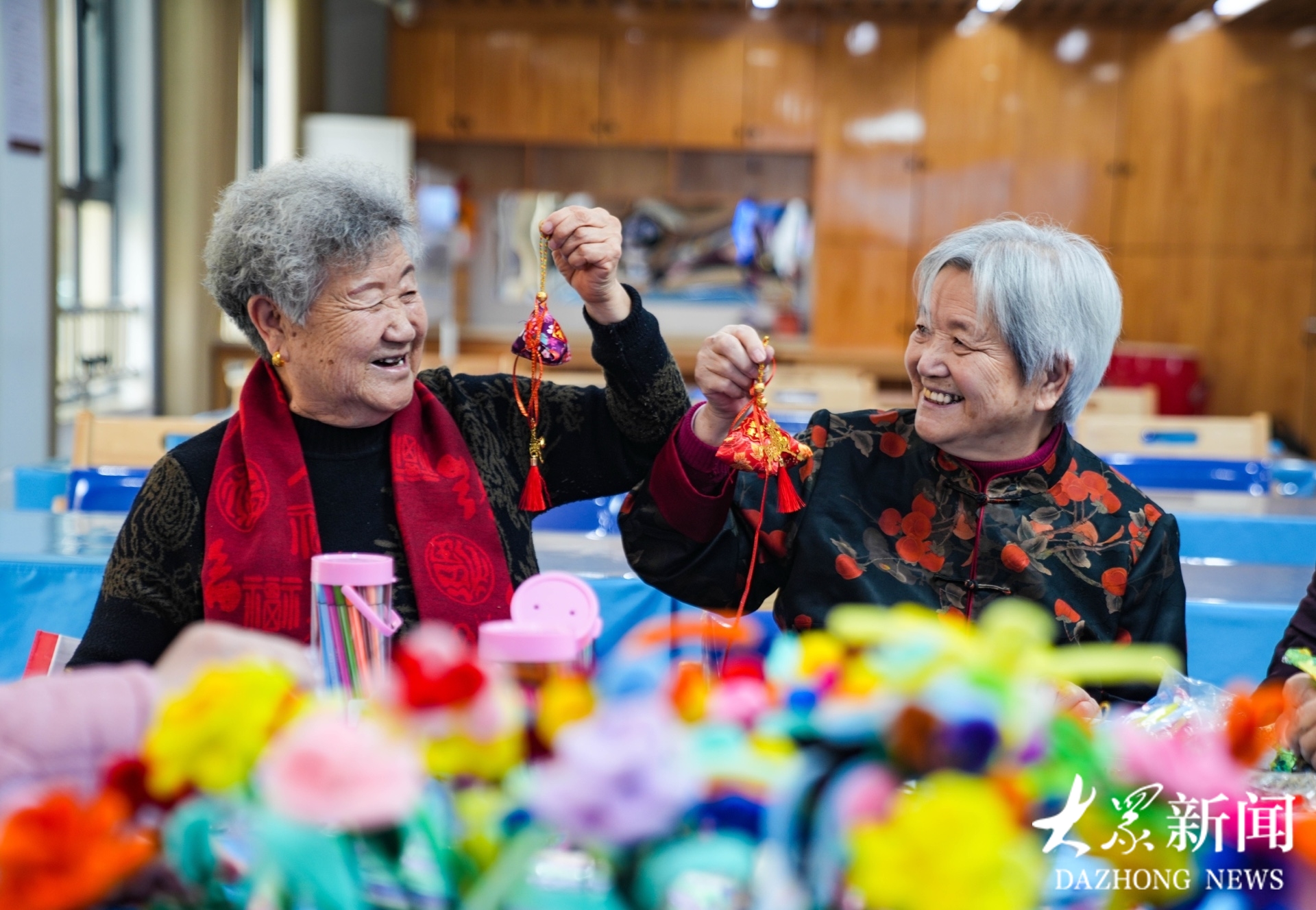 12月19日,乐陵市德乐怡嘉长者公寓,老人们在开心地制作福袋包。
