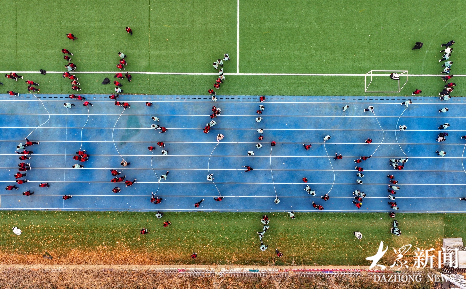 12月19日,乐陵市第一实验小学,学生们在操场上进行跳绳、游戏等体育活动。