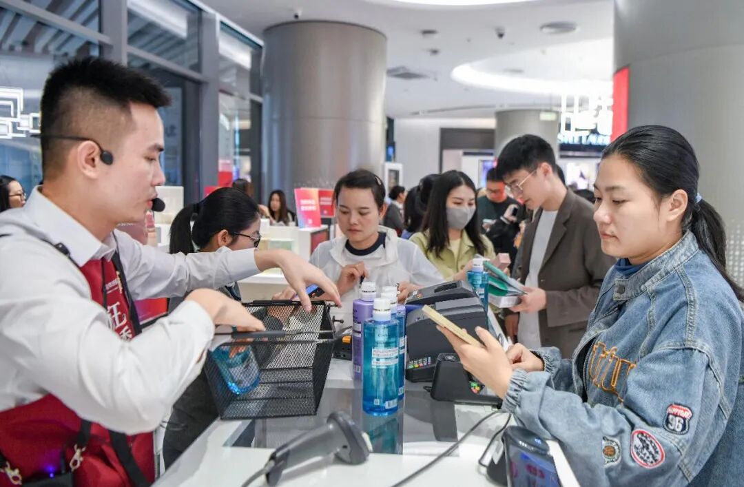 2025年12月18日,海南自由贸易港迎来全岛封关启动的历史性时刻,海口免税店迎来消费热潮。苏弼坤 摄