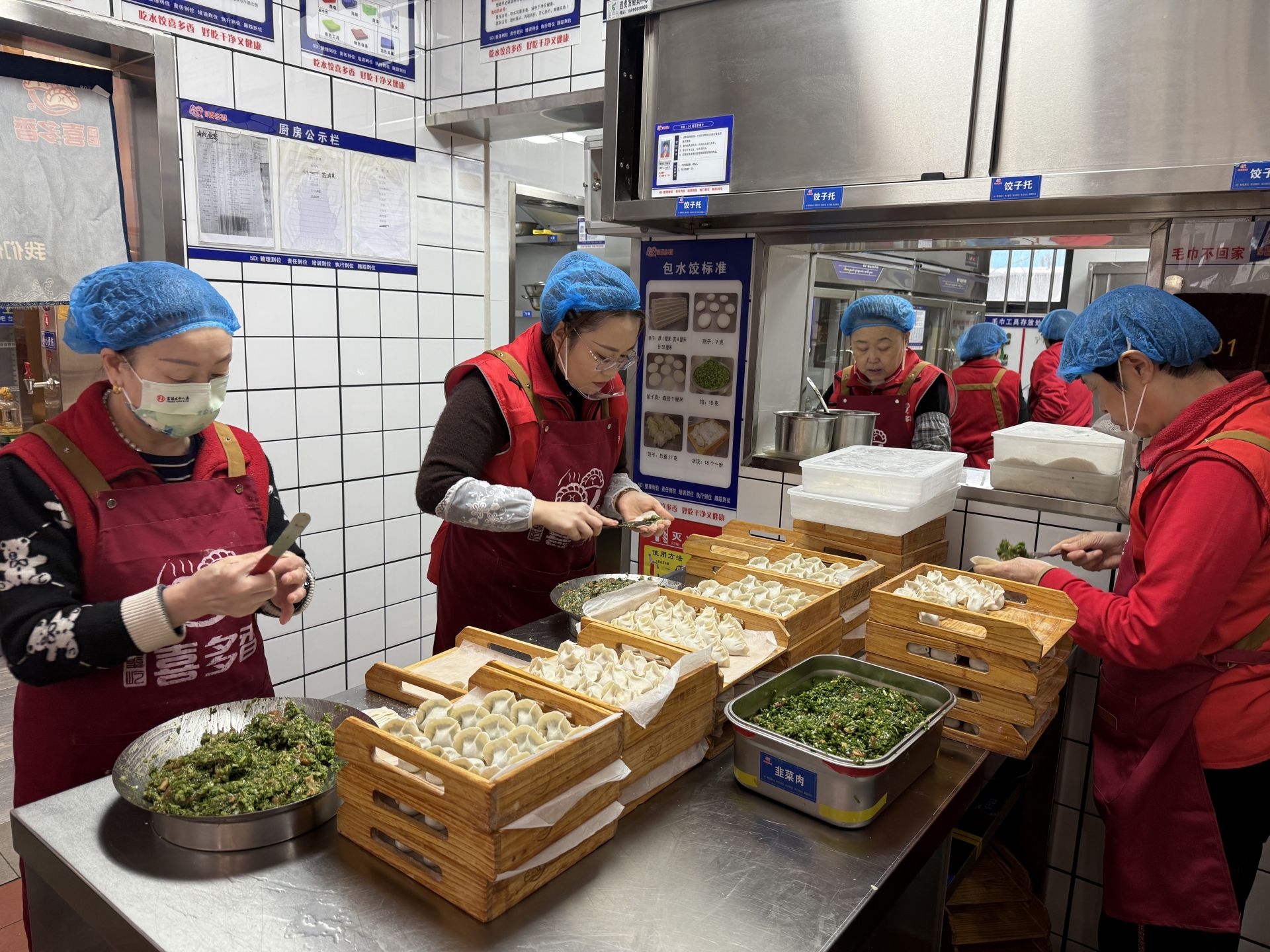 “我们开足马力包,1分钟能包十二三个,最快的能包十七八个。”店长吴伟介绍,冬至期间饺子销量是平时的3倍。按一天300单、每单点两份、每份18个计算,一天要包10800个饺子。“这还是保守估算。”吴伟笑道。