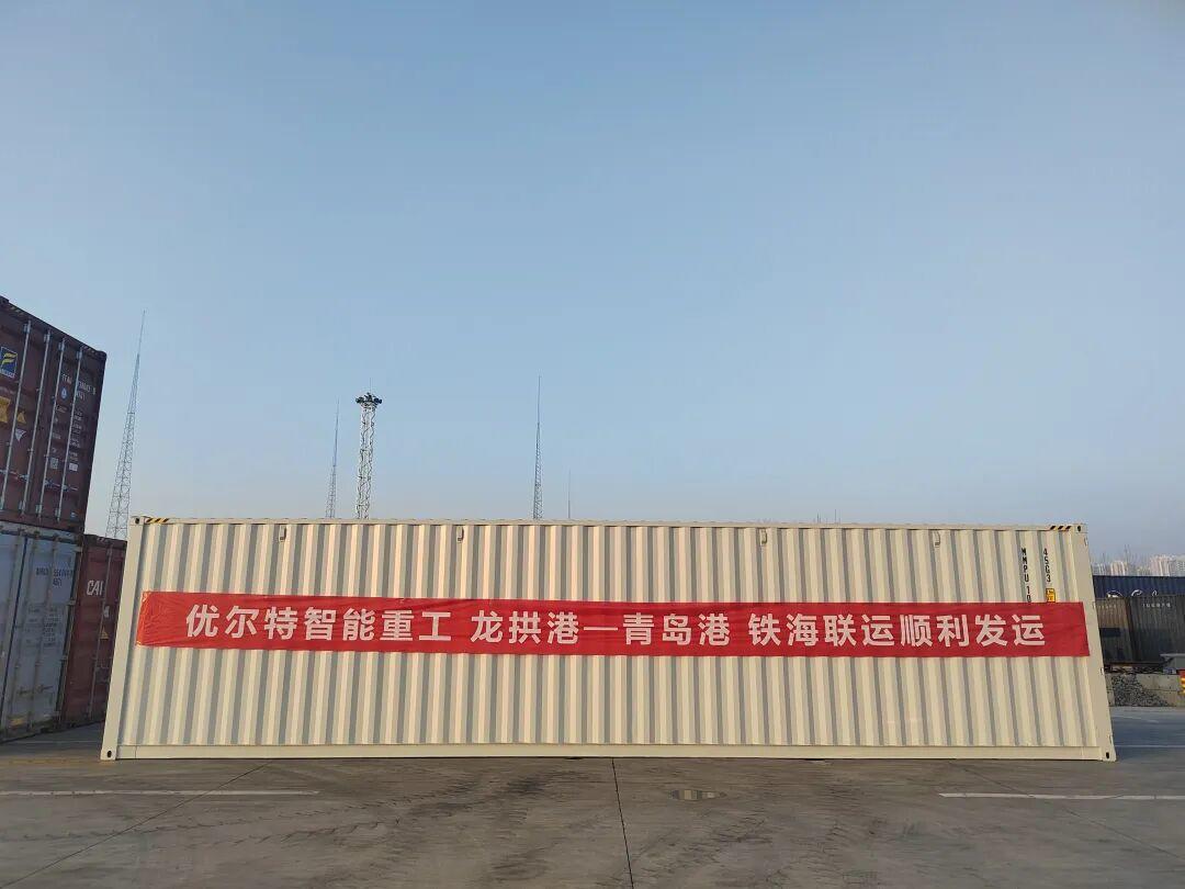 12月17日,山东优尔特智能重工机械有限公司(以下简称“优尔特重工”)发往欧美市场的工程机械设备,在龙拱港集装箱作业区完成装箱集港,由自动化轨道吊精准吊装至铁路班列,正式启运出海。