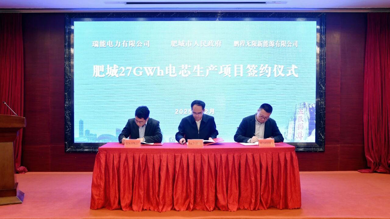 12月19日下午,肥城市政府与来自深圳的鹏程无限新能源有限公司(下称“鹏程无限”)、四川的瑞能电力有限公司(下称“瑞能电力”)共同签订了肥城27GWh电芯生产项目合作协议,将肥城新型电池电极材料产业优质生态与鹏程无限、瑞能电力的未来布局深度链接,致力打造集研发创新、智能制造、市场应用于一体的国际先进的储能电芯产业基地。