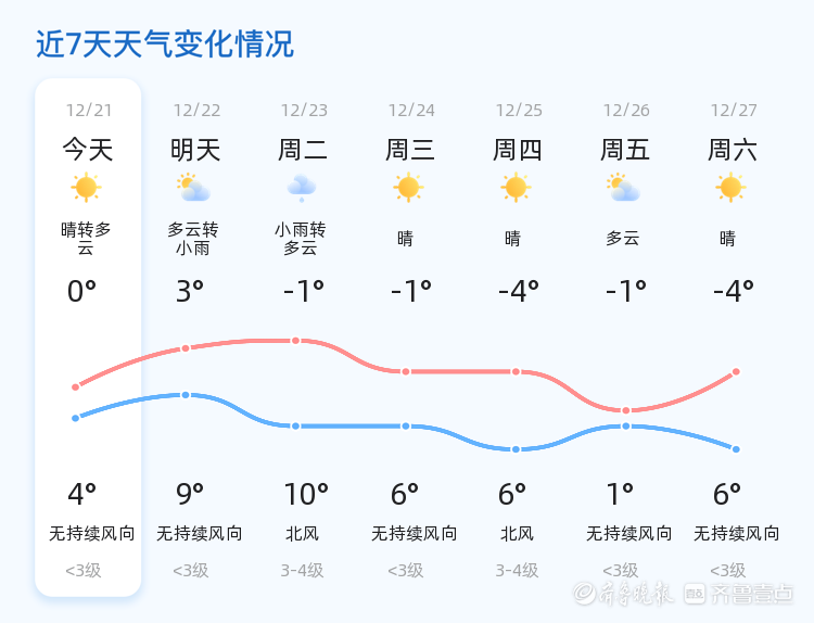 今天是12月21日,农历十一月初二,也是二十四节气中的冬至。冬至是北半球白昼最短、黑夜最长的一天,标志着正式进入数九寒天。今日日照市天气以晴转多云为主,气温较低,最低气温为0℃,最高气温4℃。风力较小,北风2级,空气湿度为37%,PM2.5指数37,空气质量良好。各区天气情况基本一致,均为晴转多云,市民出行需注意防寒保暖。
