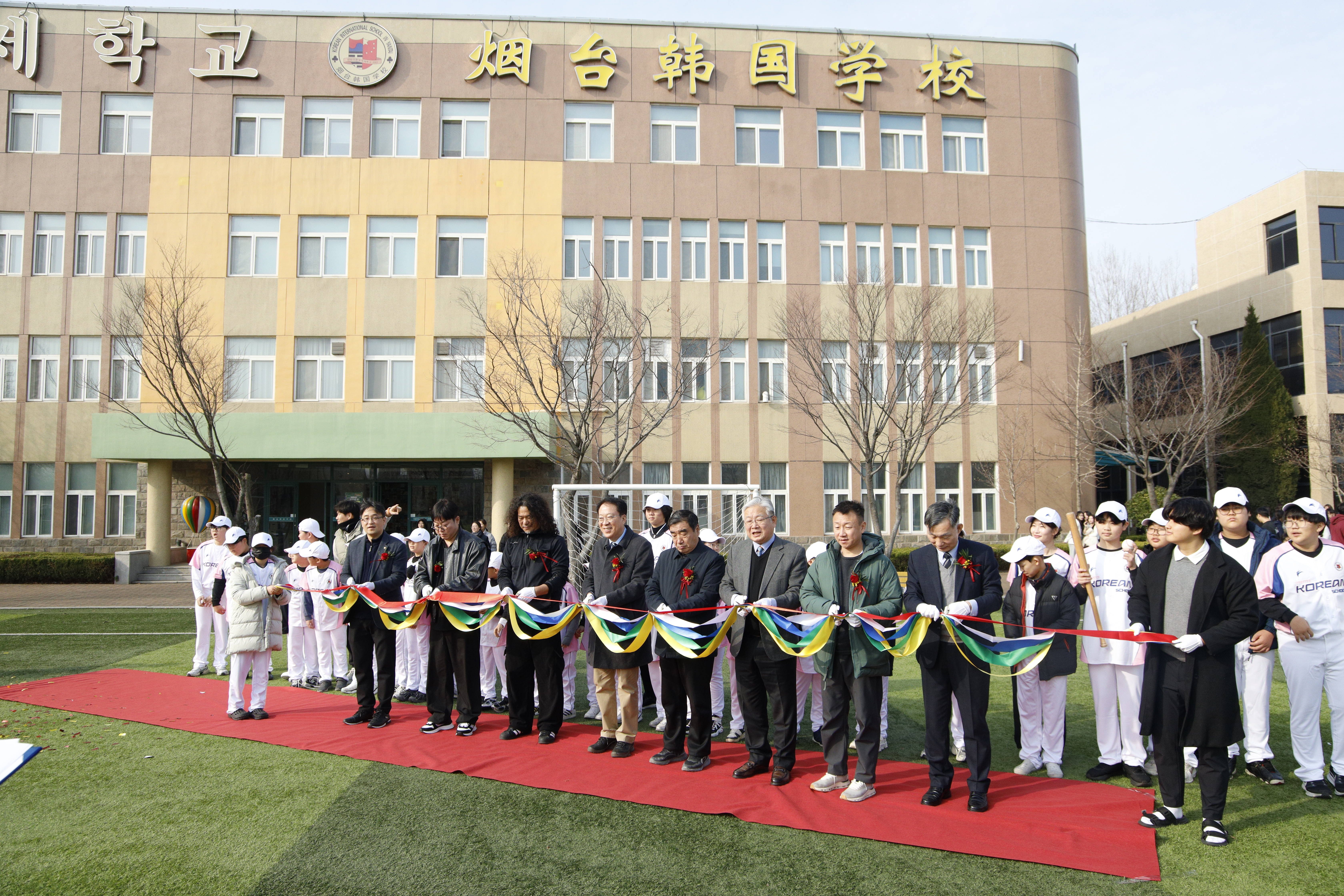 随后,活动移步至户外,进行了庄重而喜庆的剪彩仪式。中外嘉宾共同执剪,为烟台韩国学校自治棒球俱乐部的正式启航剪彩。这一刻,也标志着学校棒球运动发展迎来了全新的起点。