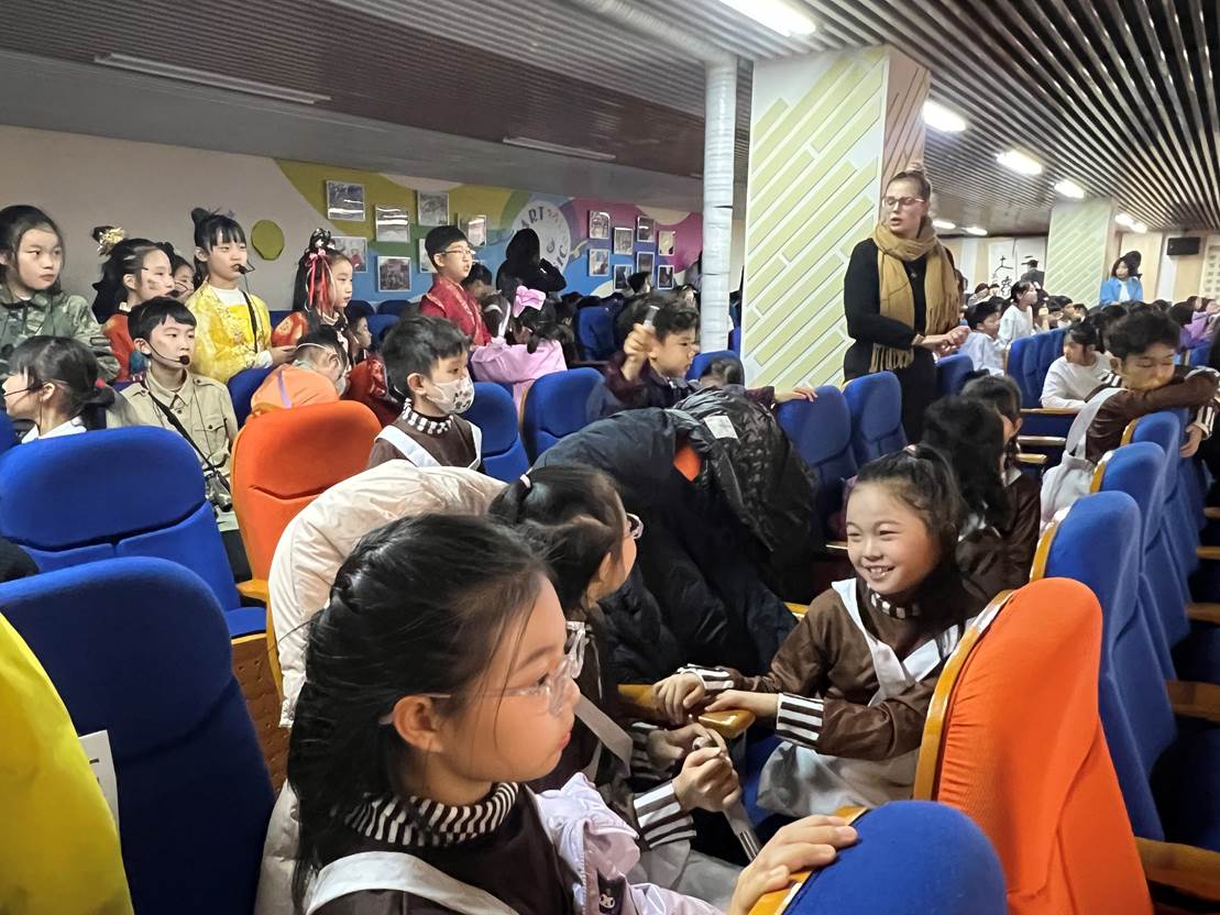 家长们的全力支持是活动顺利推进的重要保障。二年级课程创新班3班家长代表毕女士坦言,为了配合孩子的戏剧排练,家长们高度协作,不仅专门找来专业老师指导,还主动协调时间陪伴孩子打磨细节。“我们班11个小朋友,原本有些孩子性格内向,不愿开口说英语,但通过这次戏剧节,他们明显变得开朗主动了。有孩子身体不舒服,却依然坚持完成演出,这份对活动的重视和责任感让我们很感动。”毕女士表示,不少家长特意放下手头工作来到现场为孩子打气,“我们期望通过这样的集体活动,增强班级凝聚力,让孩子深化班集体概念,也期待他们在舞台上绽放光芒。”