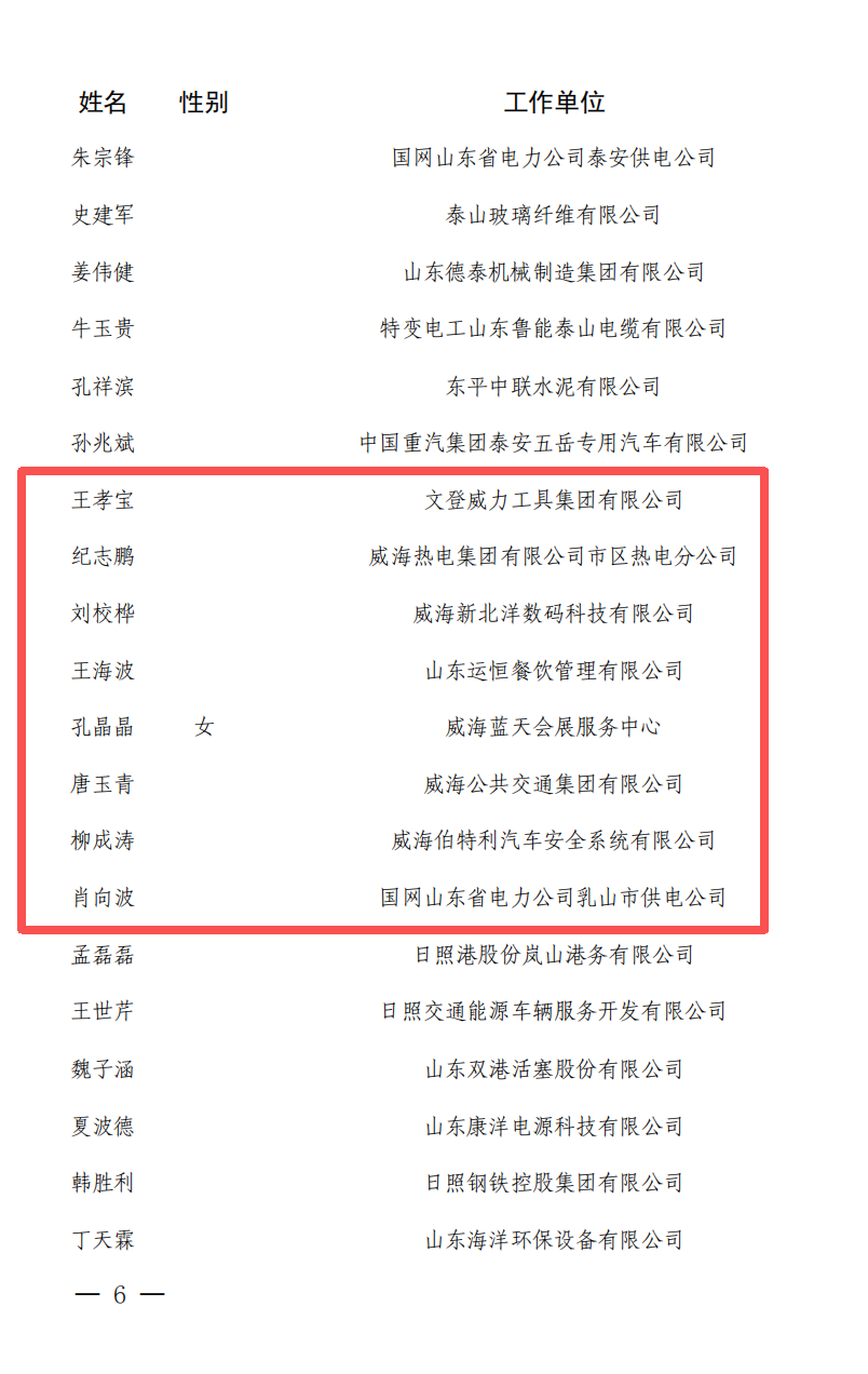 近日,山东省省委组织部、省人力资源和社会保障厅、省财政厅联合印发通知,公布了2025年度齐鲁首席技师评选结果,威海市获奖人员有文登威力工具集团有限公司王孝宝、山东运恒餐饮管理有限公司王海波等8人。