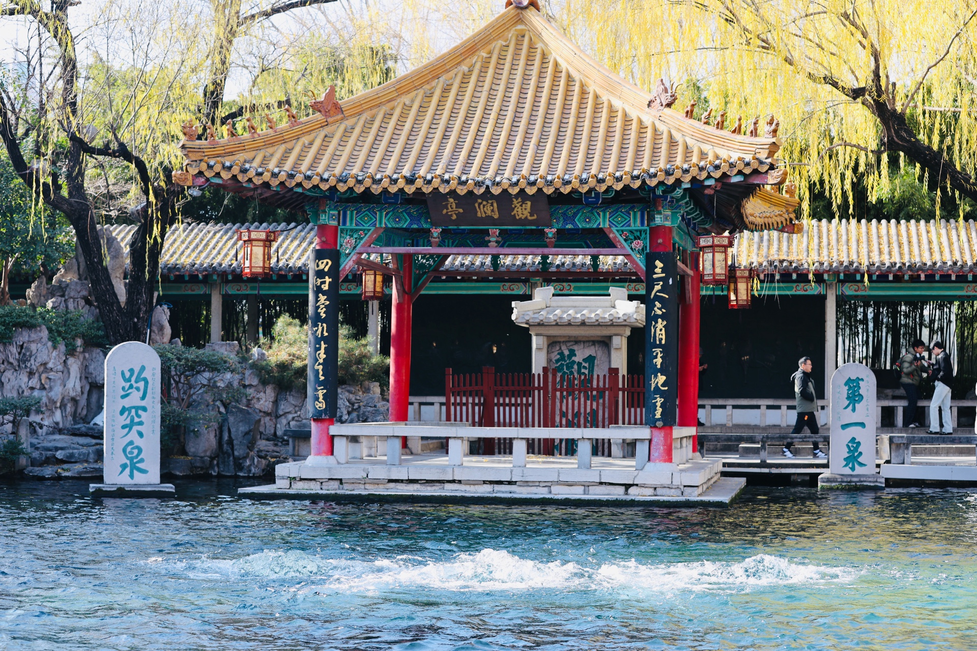 12月21日冬至山东济南趵突泉公园里泉水激荡垂柳轻扬与远远近近的亭台楼宇相映成趣如诗如画漫步其间不见冬日的萧瑟映入眼帘的皆如浓郁的秋色大众新闻记者武宗义