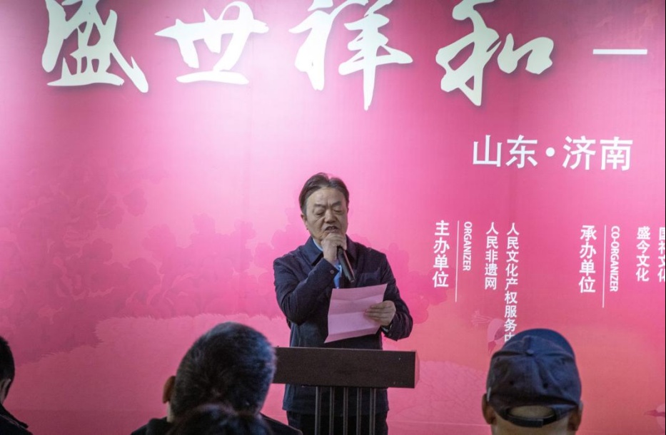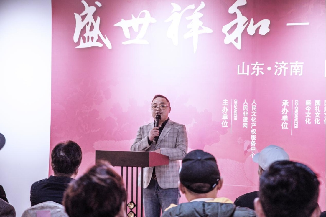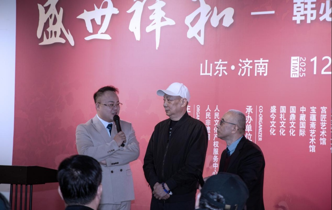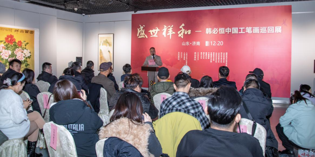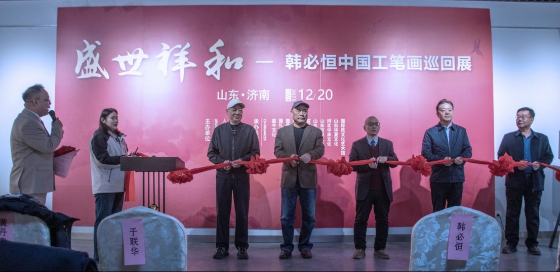 2025年12月20日,“盛世祥和——韩必恒中国工笔画作品巡回展山东济南站”在济南市大众传媒大厦盛大开幕。此次展览由人民文化产权服务中心和人民非遗网联合主办,山东华夏文化、河北中承文化、山东百家文化、山东汉古文化、宫匠艺术馆、中藏国际、国鼎文化、国礼文化、国粹苑文化艺术馆、盛今文化、宝蕴斋艺术馆等联合承办。
