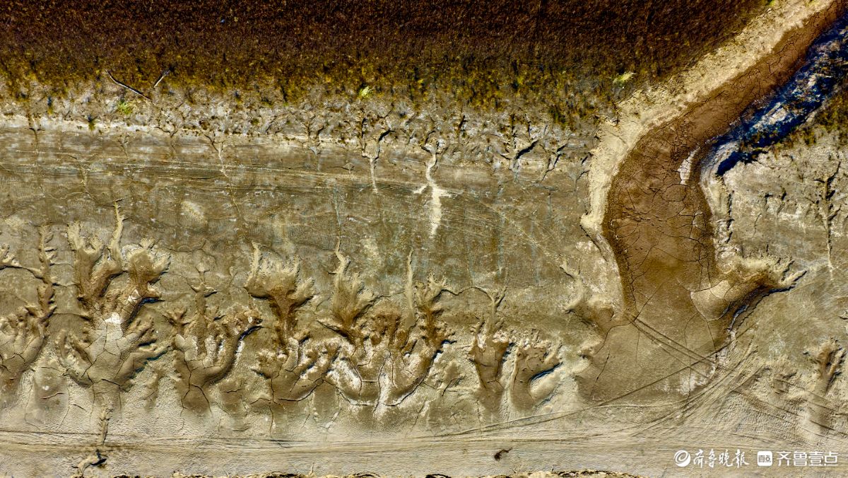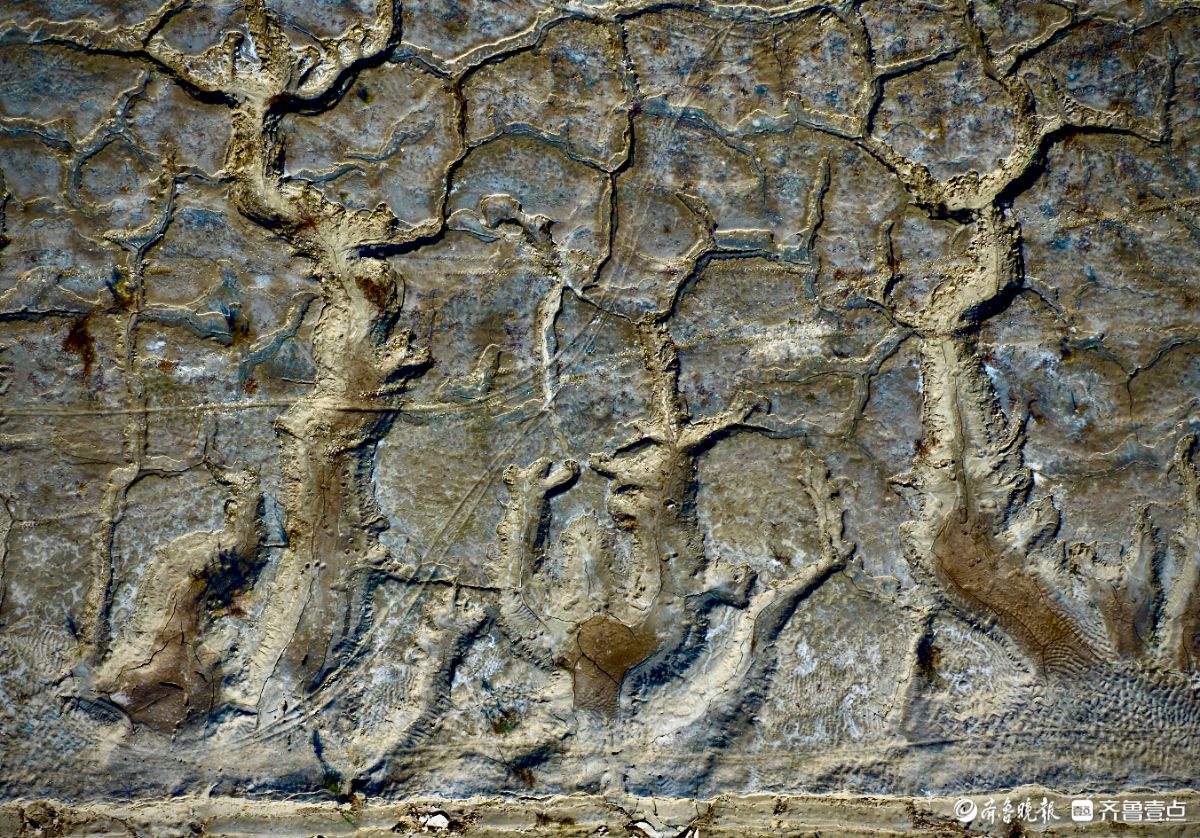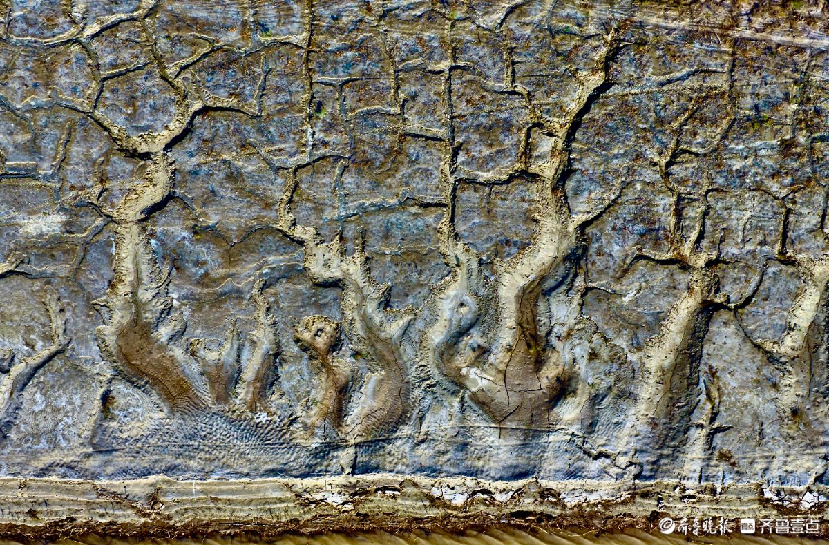 黄河岸边的潮汐画展现了大自然鬼斧神工的创造力干涸的河床上泥沙在水流与风力的作用下形成了令人惊叹的纹理与色彩龟裂的泥块与湿润的水痕勾勒出动态的韵律既有抽象画的混沌之美又暗藏山水画卷的留白意境每一道裂痕每一处凹陷都是黄河水流亿万年冲刷的印记无声诉说着河流与土地的对话这不仅是一幅自然的杰作更是时光在大地上镌刻的诗篇让观者在微观肌理中窥见天地的磅礴力量于平松摄