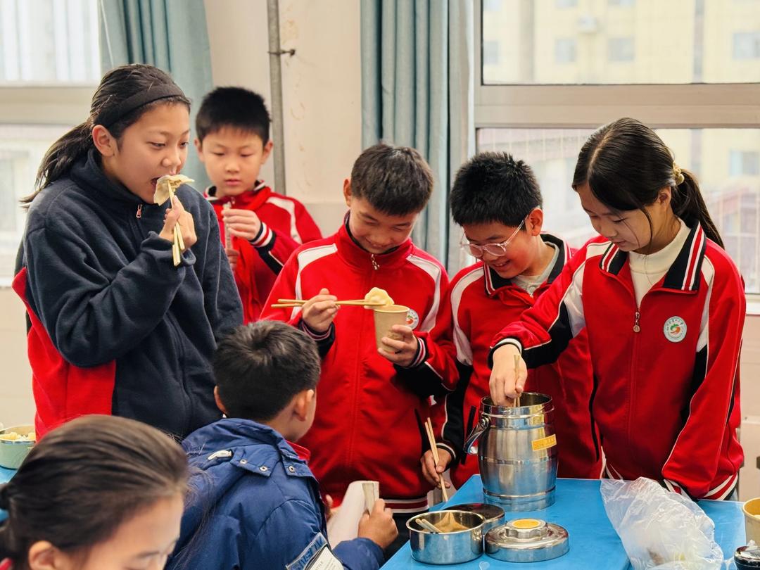 上午九时许,活动在浓浓的“家的味道”中拉开序幕。同学们从家中带来煮好的饺子,各式馅料琳琅满目。大家围坐在一起,交换品尝。热气蒸腾中,笑语洋溢,小小课堂瞬间充满了温暖质朴的生活气息。