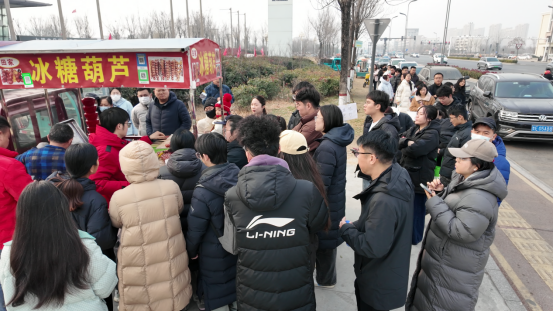 很快,田大爷的遭遇被附近的摊主发到了朋友圈,传到了学生们的耳朵里,同学们纷纷自发前往支持。“得知爷爷的遭遇后,大家都想做点什么。”山东石油化工学院学生李亚楠的话道出了众多学子的心声。有人一次买下五六串,只为让老人能早点回家;有人扫码支付后摆手拒绝找零,只留下一句“爷爷多保重”;还有曾受田大爷关照的同学特意赶来,“以前买糖葫芦,爷爷总是很亲切,还会主动便宜些,现在我们也想出一份力”。摊位前长长的队伍里,没人催促,大家轻声交流着对老人的鼓励,购买糖葫芦成了学子们心照不宣的守护。