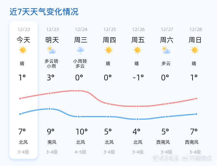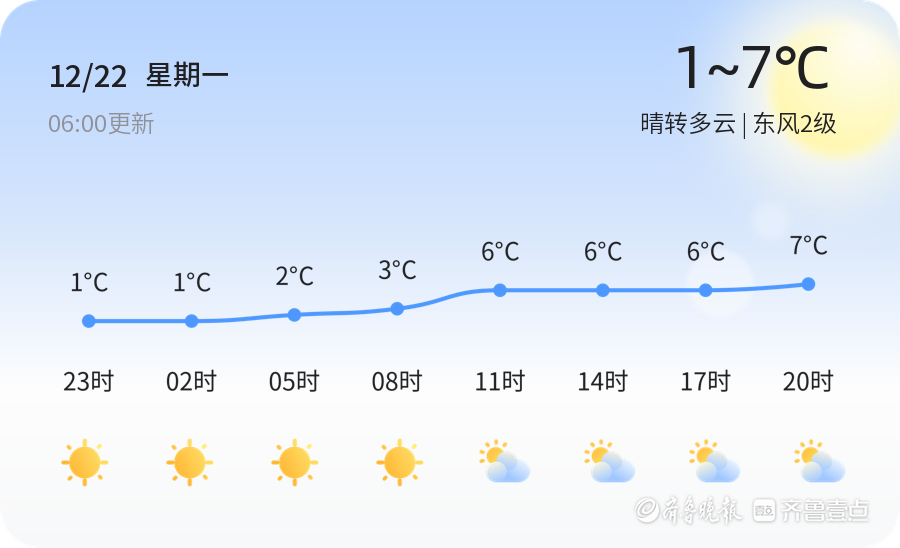 今天是12月22日,星期一,农历十一月初三。青岛市迎来晴转多云的天气,气温范围在1℃至7℃之间,东风2级,空气湿度为37%,PM2.5指数为26。各区天气情况总体稳定,市民朋友们可以放心出行,享受冬日的阳光。 明天将是12月23日,天气将转为多云并有小雨,气温稍有上升,范围在3℃至9℃之间,南风3-4级。与今天相比,明天的天气将会有明显的变化,市民朋友们需注意携带雨具,以备不时之需。 未来三天,青岛市的天气将呈现一定的波动性。周三将迎来小雨转多云的天气,气温下降至0℃至10℃,北风4-5级,风力较大,市民朋友们需注意防范大风对出行和户外活动的影响。周四和周五天气转晴,气温继续波动,市民朋友们需根据天气变化及时增减衣物,尤其是早晨和夜间,气温较低,保暖尤为重要。 温馨提示