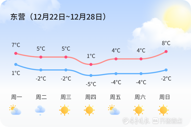全市周平均最高温7℃,平均最低温0℃,平均气温4℃,周最高气温12℃,出现在周四、周五,周最低温-2℃,出现在周六。