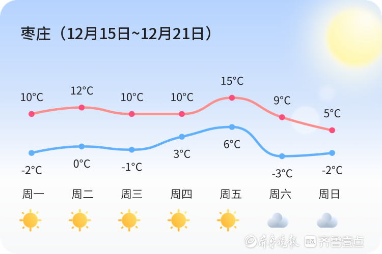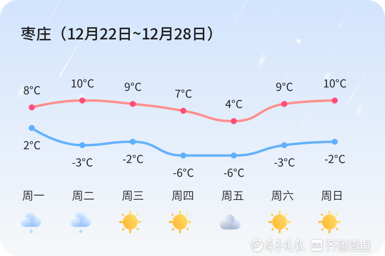 全市周平均最高温8℃,平均最低温-2℃,平均气温2℃,周最高气温10℃,出现在周二、周日,周最低温-6℃,出现在周四、周五。