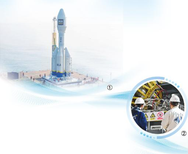 图①:2024年1月“引力一号”火箭首飞现场。 图②:东方空间车间内,工作人员正在测试发动机。以上图片均为东方空间公司提供