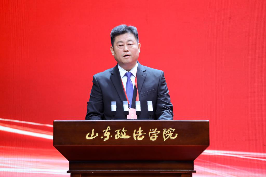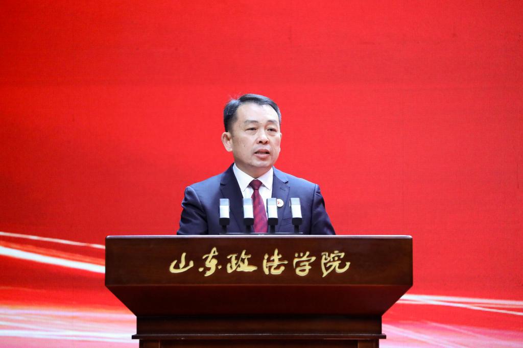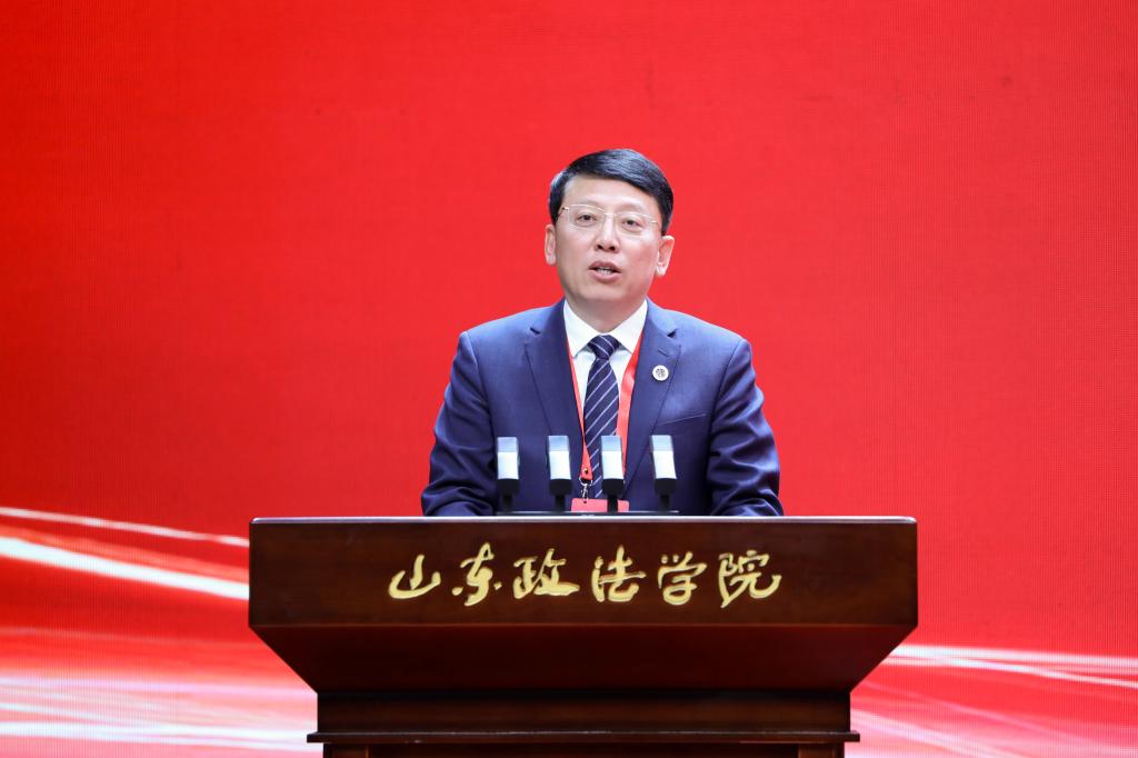 山东政法学院党委书记张祥云以《奋进七秩 再启新程》为题,作学校事业发展报告。他深情回顾了学校自1955年创立以来,从干部培训到成人教育,从普通本科院校到硕士学位授予单位的发展历程。张祥云从“党建引领、红色铸魂”“夯实内涵、特色立校”“德学并蓄、桃李芬芳”“融合赋能、奋发有为”四个方面,系统总结了学校在党的建设、学科发展、人才培养、社会服务等领域取得的显著成就。党的二十届四中全会绘就了中国未来五年发展的宏伟蓝图,全面依法治国战略向纵深推进,教育强国、教育强省建设加速推进。站在新的历史起点上,学校将全面贯彻党的教育方针,落实立德树人根本任务,始终做到政治坚定、对党忠诚,为党育人、为国育才,立足特色、争创一流,扎根齐鲁、服务大局,朝着建设新时代高水平政法类大学的目标奋勇前行。