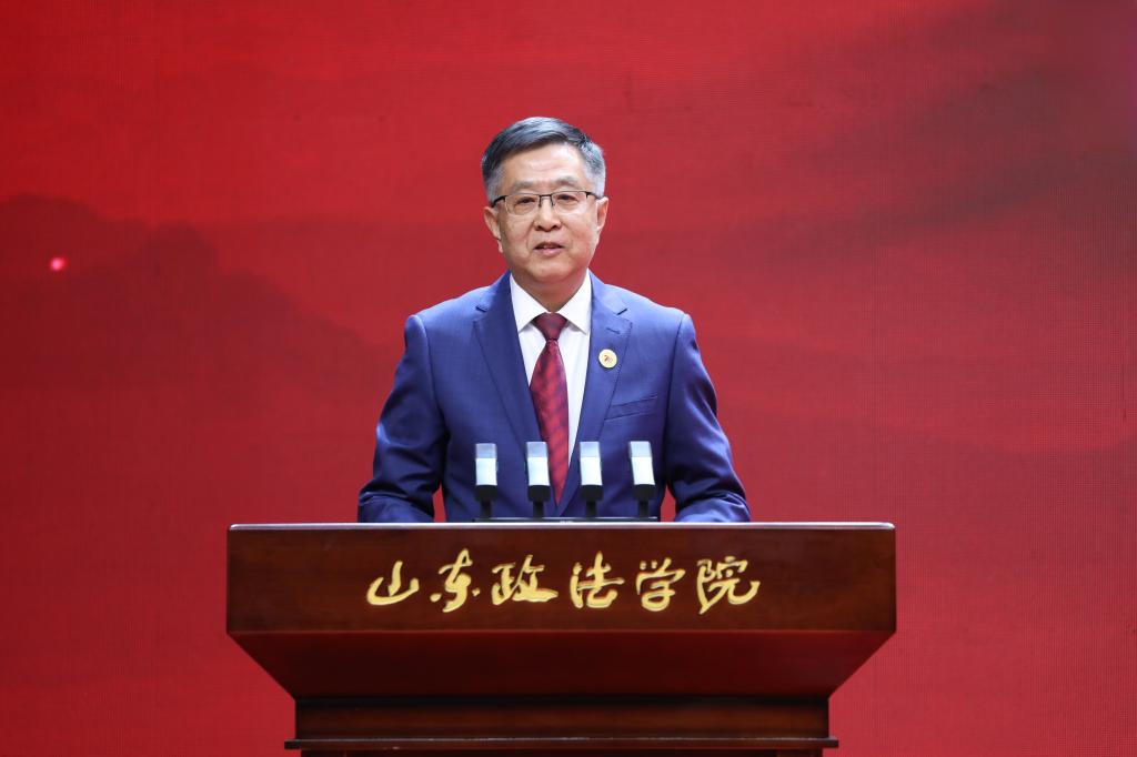 济南市委常委、宣传部部长,市委教育工委书记马保岭代表济南市委、市政府致辞。他指出,山东政法学院与济南城市发展血脉相连、共生共长,为济南的法治建设和社会进步作出了突出贡献。他表示,济南市将持续优化校地融合长效机制,全力支持学校高质量发展,并希望学校未来能将更多人才与智慧播撒在泉城,共创美好明天。
