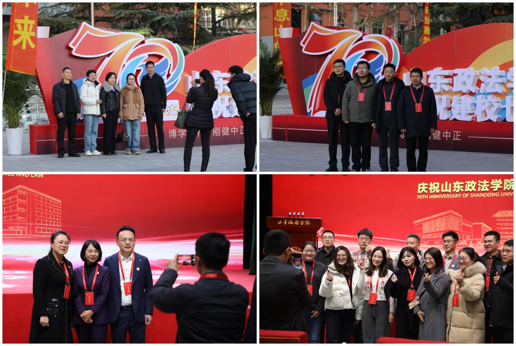 山东大学、中国海洋大学、哈尔滨工业大学(威海)、西北政法大学、甘肃政法大学、上海政法学院、山东农业大学、山东师范大学、山东中医药大学、山东理工大学、芬兰哈格哈里亚应用科学大学、法国布雷斯特高等商学院、德国特里尔应用技术大学等40所国内外高校通过贺信、贺电或视频等方式送来祝福,向山东政法学院建校70周年致以热烈祝贺,彰显了院校间的深厚情谊与协同发展共识。
