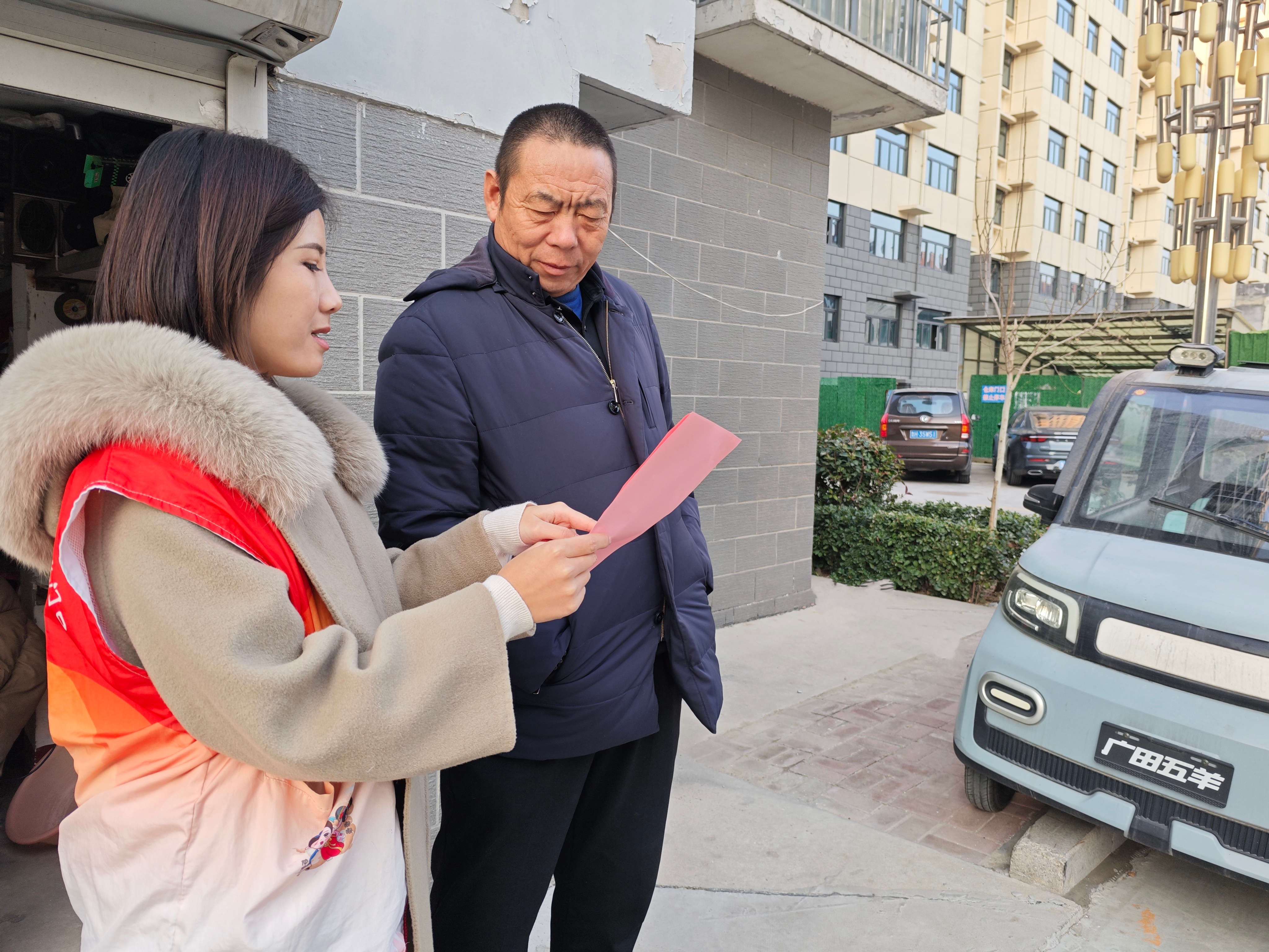 社区工作人员结合疾病预防宣传页从冬季传染病的种类、传播途径、典型症状以及如何预防等多方面向居民做宣传,重点强调了勤洗手、戴口罩、常通风、少聚集等关键防护要点。