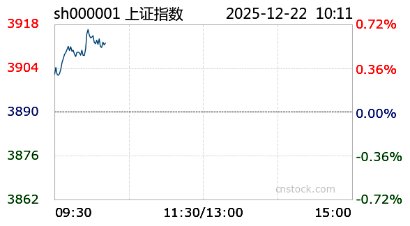 AI小壹12月22日讯 沪市小幅上涨,最高触及3917.04点,最低下探3900.52点,振幅0.56%。截至10:00,上证指数高开3912.05点,涨幅0.55%,成交额3107.53亿元,成交量2.11亿;深证成指报13317.37点,最高13329.76点,最低13225.4点,涨幅1.35%,成交额4357.74亿元,成交量2.74亿创业板报3183.79点,最高3189.36点,最低3153.75点,涨幅1.97%,成交额1933.02亿元,成交量7303.93万