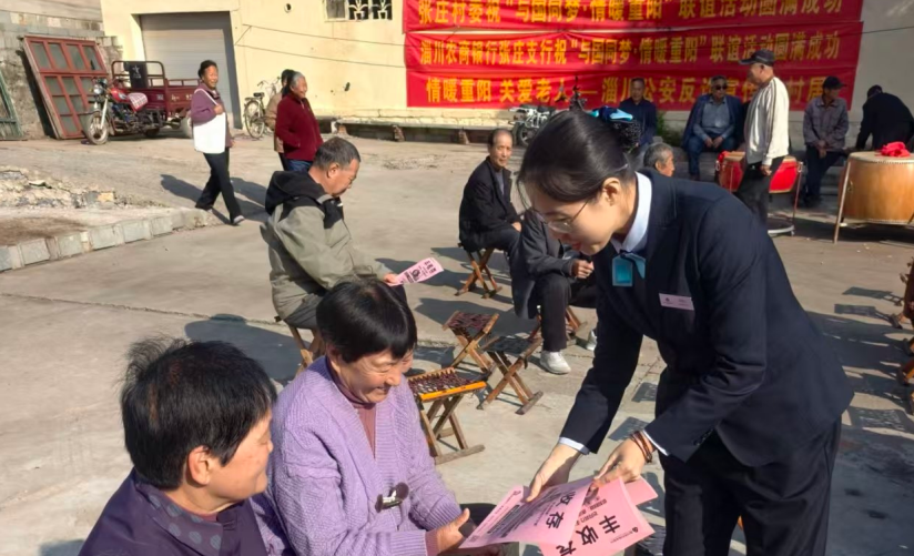 志愿服务,积极践行社会责任。积极对接供热保障服务中心、街道、村委等,采取上门代收的方式,在供热服务中心、村委设立缴费专柜,让群众在家门口缴纳取暖费。累计为群众收取取暖费2000余笔,700余万元,将缴费柜台搬到老百姓家门口。洪山支行党支部重阳节走进洪山养老服务中心,开展“岁月沉淀温暖,我们给您陪伴”志愿服务活动,为老人们送去米面油等生活物资,与他们拉家常、问需求,用真诚陪伴让老人感受到“家”的温暖。张庄支行党支部参加“与国同梦情暖重阳”联谊活动,开展反洗钱、防诈骗金融知识宣讲,为老百姓送金融知识。(通讯员 王媛媛)
