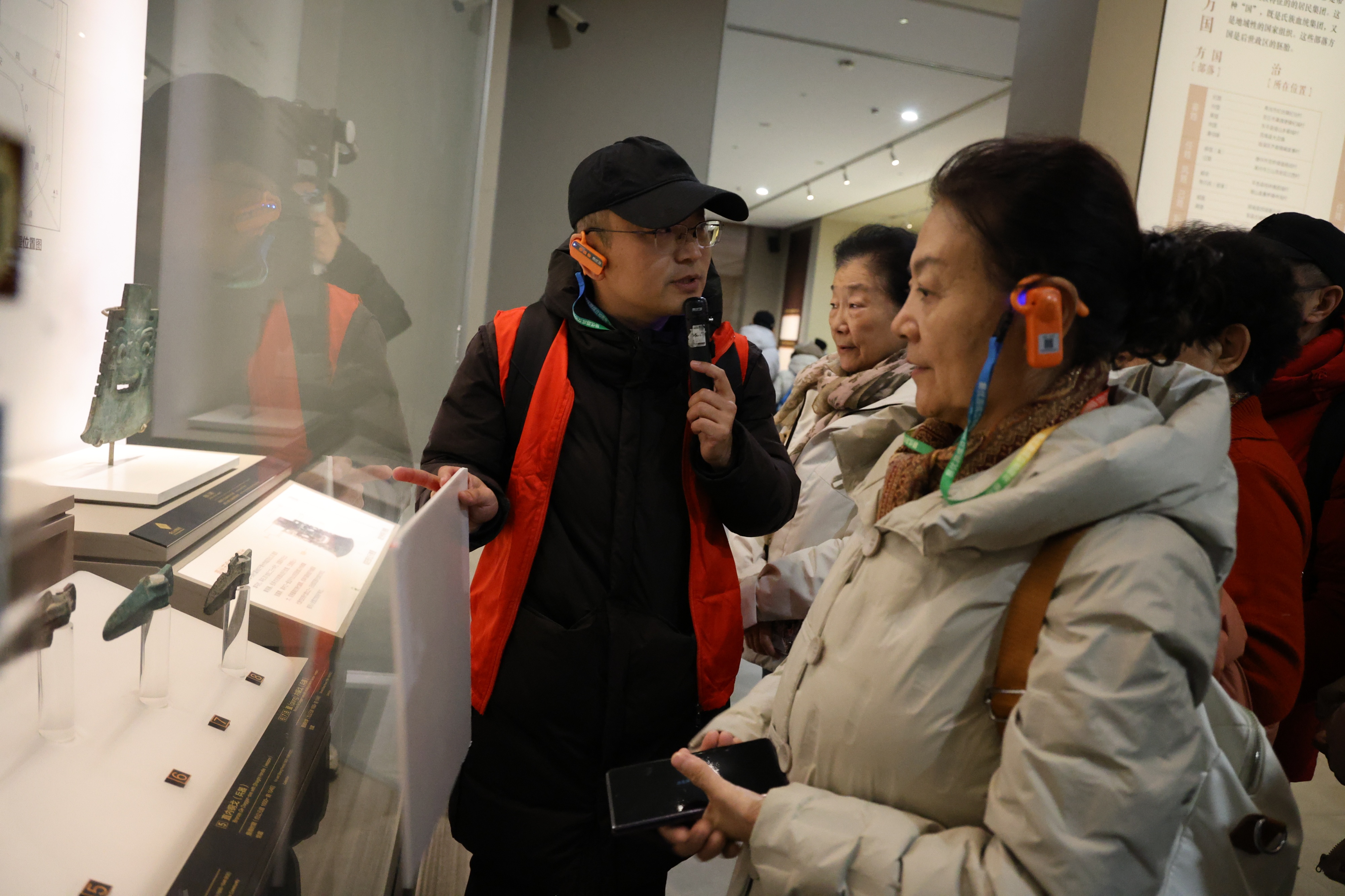 09:25,专列抵达南仇火车站后乘大巴赴齐文化博物馆。大家在“牺尊”前探寻齐国 “通货积财” 的经济智慧;在“战国铜镜”下感受古人的工艺技术与生活美学;身临“稷下学宫展厅”结合沙盘、人物画像,还原百家争鸣的历史场景。从“成语寻宝图”到“若穿越回战国临淄”沉浸式互动,大家在轻松交流中初识“泱泱齐风”,在《齐韵刀扇》长歌乐舞的盛世雄浑中,解锁文化感知新维度;齐文化研究专家为大家深度解读齐文化的核心思想、历史价值及贡献,齐国“通货积财” 的经济智慧、“百家争鸣” 的思想包容,理解齐文化对中华文明的深远影响与稷下学宫的历史地位。