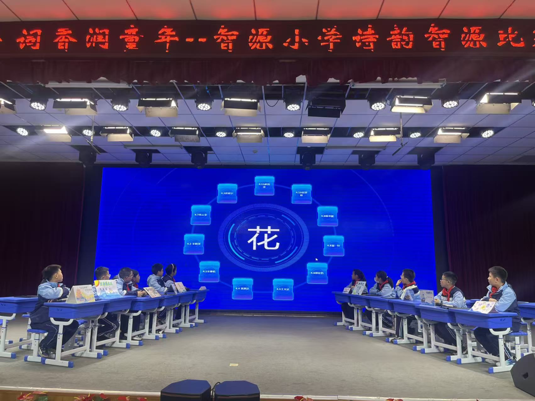 团体赛则高潮迭起,竞争激烈。“必答题”夯实了各队的基础知识;“抢答题”不仅比拼知识储备,更考验反应速度,现场气氛紧张刺激;“风险题”环节策略与勇气并存,各队审时度势,勇于挑战,将比赛推向高潮;最后的“飞花令”对决,选手们才思泉涌,佳句频出,充分展现了诗词的无穷魅力与智源学子的风采。